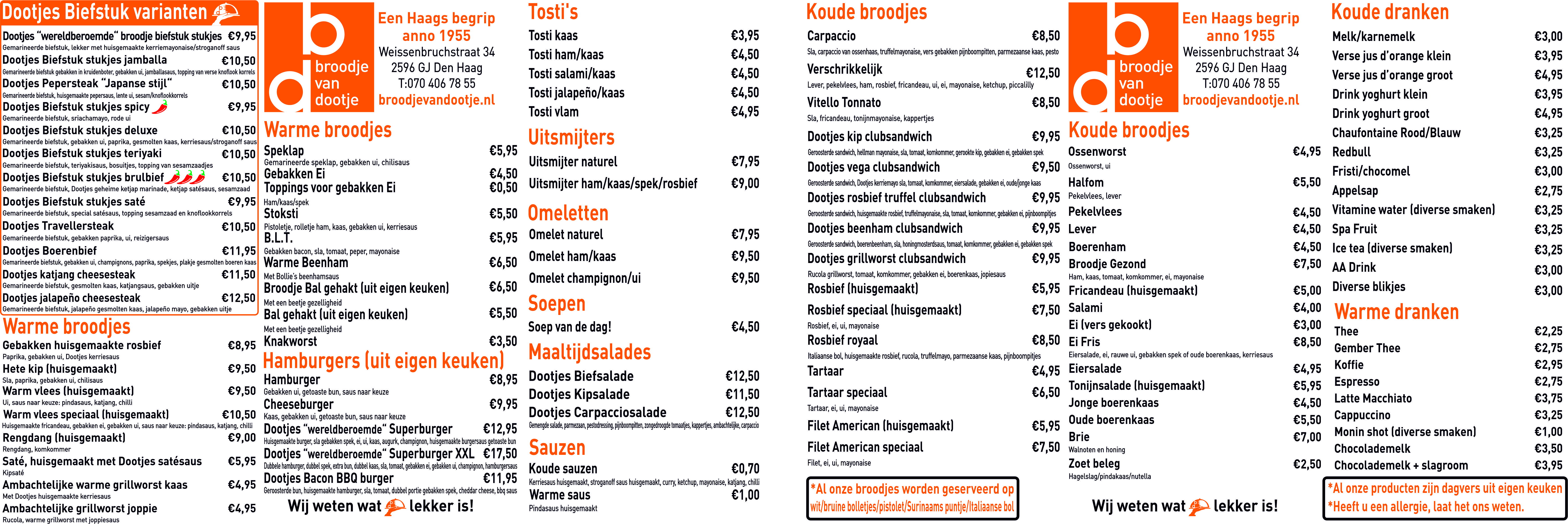 Kies uit onze biefstukvarianten of andere huisgemaakte broodjes